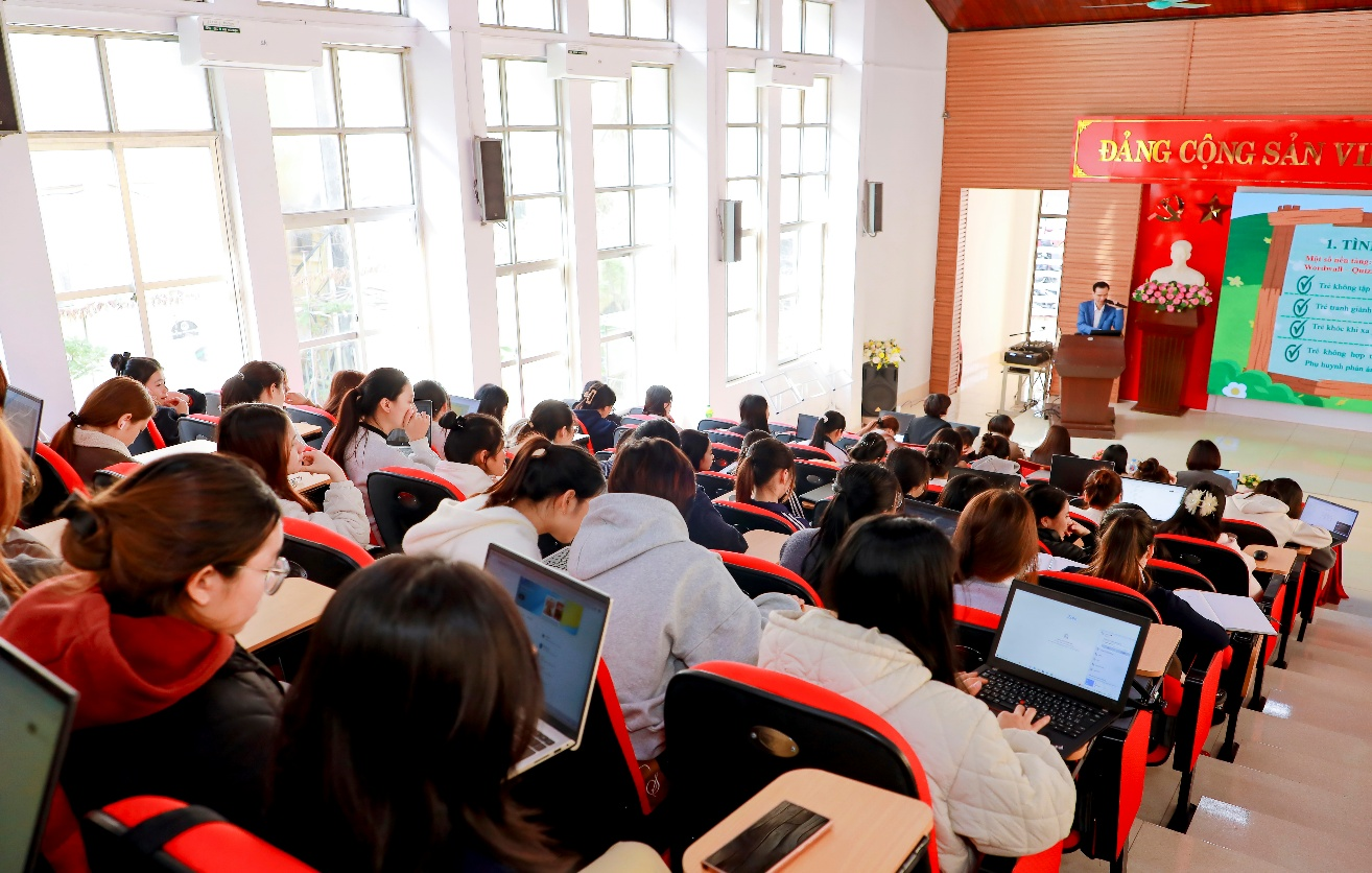 Chương trình thu hút sự tham gia đông đủ của cán bộ, giảng viên hai Khoa cùng sinh viên các lớp K13.GDMN, K46.GDMN, K47A.GDMN, K47B.GDMN, thể hiện sự quan tâm sâu sắc của nhà trường, giảng viên và người học đối với các vấn đề đổi mới giáo dục trong kỷ nguyên số.