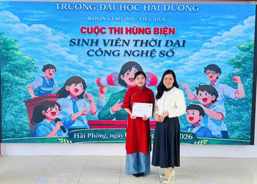 Nhân kỷ niệm 76 năm Ngày truyền thống Học sinh, Sinh viên và Hội Sinh viên Việt Nam, trong không khí trong trẻo của tri thức và khát vọng tuổi trẻ, ngày 9 tháng 1 năm 2026, tại Giảng đường 1, Khoa Giáo dục Tiểu học - Trường Đại học Hải Dương đã tổ chức Cuộc thi hùng biện với chủ đề “Sinh viên thời đại công nghệ số”.
